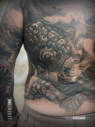 Peter Bogdanov has spent a lifetime studying the human body, not just for anatomy—but for meaning. His large-scale works treat the body not as a billboard but as a canvas of identity. He designs pieces that flow with the musculature, honor the bone, and tell the truth of the wearer.